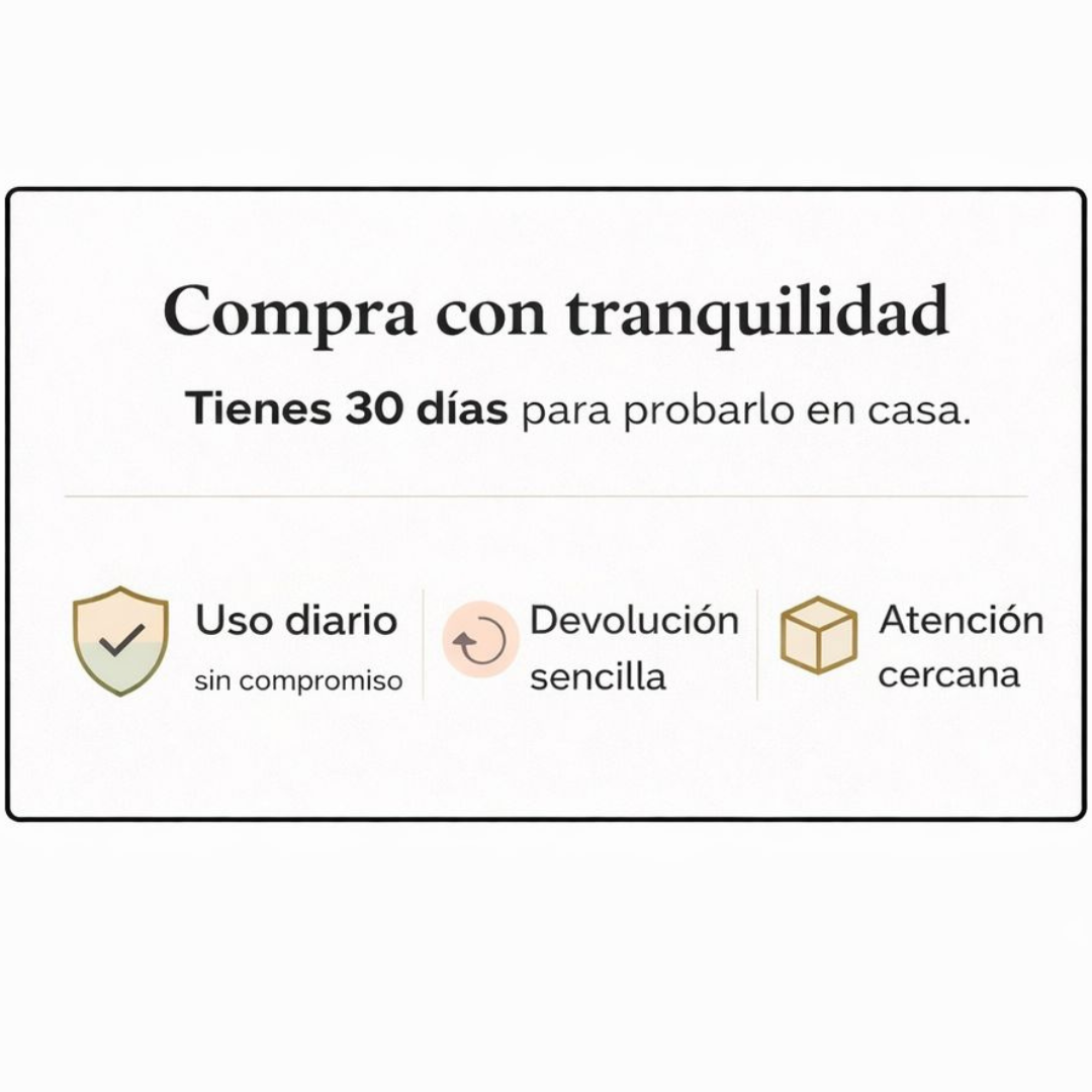 Garantizamos la calidad de nuestros productos. Si por cualquier motivo no estás satisfecho, estás cubierto por nuestra garantía de 30 días.